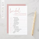 Stomped op hoe je je vrijgezellenfeest kunt laten opvallen? Het Dusty Pink and White Vrijgezellenfeest Word Scramble-spel is de oplossing. Deze moderne, minimalistische kijk op een klassiek partijspel zal uw gasten zeker verrassen en betrekken. Als het gaat om vrijgezellenfeest games, dit woord scramble neemt de taart. De verfijnde look en feel verheft het hele evenement, terwijl de boeiende activiteit iedereen bij elkaar brengt in lachen en vriendelijke concurrentie. Kijk hoe de aanstaande bruid oplicht terwijl haar naaste en dierbaarste hun hoofden samenvoegen om de verborgen woorden te ontcijferen. Het is een trefzekere manier om blijvende creëer-herinneringen in je vrijgezellenfeest te bewaren.