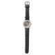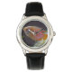 De originele foto van ZoeSPEAK op dit horloge show een dwerggouramivis die in een aquarium zwemt. Deze kleurrijke tropische vis heeft een oranje body met verticale strepen die er iriserend lichtblauw uitzien in zonlicht. Groene bladeren van een onderwater plant zijn te zien in een hoek van de foto, een deel van een grote schelp in een andere hoek achter de vis, en de achtergrond is een getextureerde medium grijs.