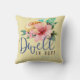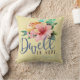 , inspirerende kussen | "Dwell in hope." De basis van Psalms 16:9-tweeslachtig versum met prachtige florale bouquet op een bleke gele achtergrond.