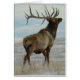 Bull Elk Lucky 13 Bull Kaart. Deze grote oude stier die dertien punten op zijn enorme rek spant, komt aan het einde van zijn "primejaren", maar snijdt nog steeds een intimiderende figuur terwijl hij trots over de sneeuwvlakten stoot.