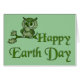 Cute owl in schaduwen van groen zegt Happy Earth Day. Laat het je helpen om het woord te verspreiden over het belang van groen worden voor onze planeet. Geweldig voor de feestdagen op Aarde, fundraisers en andere evenementen die gewijd zijn aan het redden van de aarde.