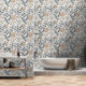 Unieke abstracte bloemrijke bohemien in aardse tinten van bruin en zwart. Gestileerde bloemvormen en bladeren. Creëer Een warme aardse accentmuur met dit unieke patroon, of verfraai de binnenkant van een plank of de voorkant van een credenza. Denk out of the box voor wat doe-het-zelf plezier bij het creëren van uw interieur stijl.
