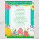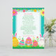 Add your child's name to this customizable letter from the Easter Bunny. On the back is some fun questions for your child to answer. Cute pink, teal, yellow and green letter with Easter eggs, bunny, carrots, flowers i pastel colors.