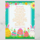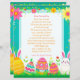 Add your child's name to this customizable letter from the Easter Bunny. On the back is some fun questions for your child to answer. Cute pink, teal, yellow and green letter with Easter eggs, bunny, carrots, flowers i pastel colors.