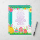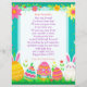 Add your child's name to this customizable letter from the Easter Bunny. On the back is some fun questions for your child to answer. Cute pink, teal, yellow and green letter with Easter eggs, bunny, carrots, flowers i pastel colors.