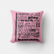 Kute roze muziek gooit kussen met een bassonistische uitspraak die zegt eten, slapen, werken, Bassoon spelen.