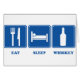 Een klassiek ontwerp met de titel "Eat Sleep Whiskey" voor degenen die graag whisky drink wanneer ze de kans krijgen.