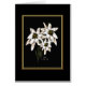 Mooie grafische illustratie van de mooie alpiene bloem, Edelweiss, op een opvallende zwarte achtergrond. Pas dit aan om een geweldig geschenk te maken voor elke gelegenheid.