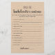 Koop dit bewerkbare spel en geniet van hoge kwaliteit Afwerken van de Bachelorette's Sentence kaart voor uw evenement! Dit is een spel sjabloon, U kunt de vragen veranderen zoals u wenst! Kraftpapier-papierontwerp.