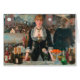 Een klassiek impressionistisch schilderij van Edouard Manet uit 1881, met een mooie vrouwelijke barman in een restaurant. Champagne, sinaasappels en prachtige Victoriaans jurk, met alle diners op de achtergrond.
