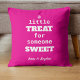 Witte grote letter, "Een beetje traktatie voor iemand zoet" - gepersonaliseerde naam | Hot Pink Valentijn Pillow. Het is een prachtig cadeau voor de Valentijnsdag, maar ook voor andere gelegenheden. Klik op de knop "Aanpassen" om de achtergrondkleur, lettertypestijlen en lettertypekleur te wijzigen.