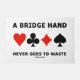 Laat uw pooifbrugspeler aan de zijkant zien met deze deurmat met de vier kaartpakken samen met het volgende bruggetje gezegde: "Een Bridge Hand zal nooit verspillen". Laat anderen bij elke kaart die ze spelen een dubbele opname doen met een dosis brughouding met deze deurmat. Ideaal formaat voor elke brugclub!