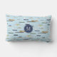 Deze unieke boedel met de buitenste kussen heeft een gevarieerd formaat zeevarende schepen op een blauwe achtergrond met een aangepast monogram op een donkerblauwe cirkel - het patroon omvat twee vrachtschepen, twee zeilschepen, twee antiek houten boten, één vissersboot, een rowboot en een huisboot - bij een nauwe inspectie van het patroon zijn mensen te zien die genieten van "A Day On the River" © katz_d_zynes 20220220