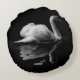 Een elegante witte zwaan op een zwarte achtergrond rond kussen