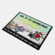Een deurmat met een grappige cartoon over mensen die een sneeuwblazer aanbidden. Origineel kunstwerk van DB Cartoons.