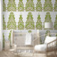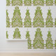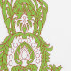 Dit ontwerp toont een ingewikkeld en bloemmotief. Het ontwerp is voorzien van symmetrische arrangementen van wijnstokken-achtige elementen met delicate bladeren en bloemen. De overheersende kleuren zijn tinten groen, met hints van roze en wit, waardoor een harmonieuze en elegante compositie ontstaat. Het patroon is zeer gedetailleerd, met ingewikkelde lijnwerk en decoratieve bloeit overal. Het lijkt een klassiek en traditioneel ontwerp, dat doet denken aan behang of textielpatronen.