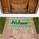 Een deurmat met patroon en groen. De olijfgroene achtergrondkleur kan worden veranderd in elke kleur om te coördineren met uw deur. Welkomsttekst kan worden aangepast aan elke kleur of elk bericht of tekst kan worden verwijderd.