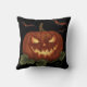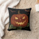 Een grote pompoen met gloeiende ogen en vleermuize kussen