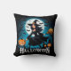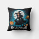 Een speelse heks rijdt op haar bezemsteel, omringd door vleermuizen en pompoenen, terwijl de volle maan een magische gloed werpt over het betoverde landschap.