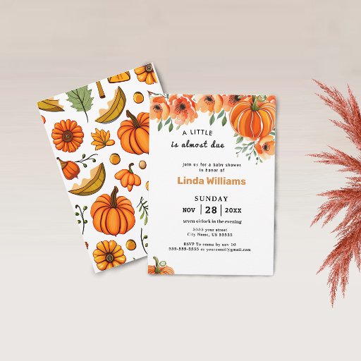 A Little Pumpkin Herfst Floral Baby shower Invitation heeft een minimalistische lay-out en is het perfecte herfstbloemenbaby shower. Pas deze uitnodiging aan door informatie toe te voegen. Er is geen minimale bestelhoeveelheid.