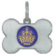 Label Met een kroon die geschikt is voor uw hondenkoning of -koningin, kan dit hondenkonijn met trots worden gedragen door degenen die ons hart regeren. De originele afbeelding van een gouden kroon is gemaakt van botten en pootafdrukken, met gouden tekst onder de kruin om u te personaliseren met de naam van uw hond. De achtergrondkleur is blauw, maar dit kan naar een andere worden gewijzigd als u dat wilt - het is volledig aanpasbaar aan degene die u liefhebt.