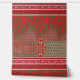 Het ontwerp heeft een mooi en ingewikkeld patroon, waarschijnlijk bedoeld voor stof, behang of andere decoratieve oppervlakken. Hier is een gedetailleerde beschrijving: · Boven- en ondersecties: Deze secties hebben een grijsbruine achtergrond versierd met diamantvormige motieven en kleine rode bloempatronen verspreid over. · Central Band: Verticaal door het midden lopen is een opvallende rode band met ingewikkelde gouden details. Deze band wordt geflankeerd door dunnere gouden strepen en extra gouden design aan beide zijden. De rijke kleuren en gedetailleerde patronen suggereren een luxe of traditioneel ontwerp, vaak te vinden in formeel of ceremonieel textiel.