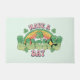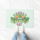 Deurmat met een St. Patrick's Day thematisch afbeelding. Een retro grunge-stijl ontwerp dat zegt: Heb een geluksdag. Met een kleurrijke regenboog achter. Woorden geschreven in een dikke ronde retro-stijl vibe. Roze en groene kleuren.