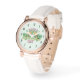 Een horloge met een St. Patrick's Day thema afbeelding. Een retro grunge-stijl ontwerp dat zegt: Heb een geluksdag. Met een kleurrijke regenboog achter. Woorden geschreven in een dikke ronde retro-stijl vibe. Roze en groene kleuren.