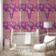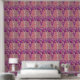 Het ontwerp heeft een patroon dat bestaat uit talrijke kleine cirkels die een groter visueel effect creëer. Het midden van het afbeelding heeft een vorm die lijkt op het hoofd en geweien van een hert, gecreëerd door de kleurdichtheid van de cirkels te variëren. · Achtergrond: De achtergrond bestaat uit dicht opeengepakte cirkels, terwijl de vorm van het hert in een lichtere tint verschijnt als gevolg van sprankelende en lichter gekleurde cirkels. · Bottom Section: Onder de middenfiguur zijn er verschillende grotere cirkelvormige vormen met intensere roze en paarse tinten die opvallen tegen de geelachtige achtergrond. Deze grotere vormen worden in een onregelmatig patroon langs de onderrand van het afbeelding geplaatst. Het algemene ontwerp is visueel opvallend vanwege het contrast tussen de dichte achtergrond en de lichtere centrale figuur, evenals de levendige kleuren die in het onderste gedeelte worden gebruikt.