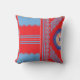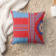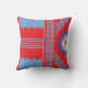Een ontwerp van een rood en blauw patroon kussen