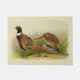 Colored Drawing of a Ring Necked Pheasant rooster die over zijn kip kijkt terwijl ze op zaaigoed zoekt in de klaring van een met gras gevulde prairie. De Rooster is een regenboog van kleuren zoals groen, geel, sinaasappels, blauw, browns en witte. Een Opland Game vogel.