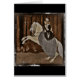 Vrouw die de bossen ingaat op haar wild witte paard. Aubrey Beardsley-kunst uit de New-tijdperk.