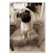 © Jim Dratfield/Wild Apple. Een sepia-shot van een insect die op een stoel staat. Het hoofd van de pug staat aan de zijkant, met een blik van verwondering in zijn ogen.