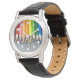 Een rij gekleurde pennen. horloge