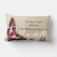 Een roze vlinder op een roomsatijnachtergrond kussen