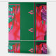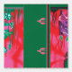 Het ontwerp lijkt een digitaal of gestileerd kunstwerk te zijn, verdeeld in twee panelen door een verticale groene lijn. Hier is een uitgebreide beschrijving: · Linkerpaneel: o Beschikt over een ketting dat in de lucht boven een paarse rots hangt. o De rots is omgeven door groen en rood gebladerte. · Rechterpaneel: o Deze zijde is een gespiegelde en licht gewijzigde versie van links. o Het ketting is afwezig. o Er zijn enkele variaties in de plaatsing van het blad. De symmetrische compositie en levendige contrasterende kleuren creëer hebben een visueel opvallend effect.