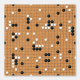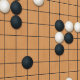 Zwarte en witte stenen spelen op een eindeloos go-board.