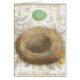 © Moira Hershey/Wild Apple. Een vogelnest gemaakt van bruine twijgen en takken met een groen ei. De witte achtergrond van het afbeelding heeft schetsen van planten erop.