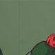 Terwijl het wandelen langs de bosvloer, beweegt een weinig groene blad SPRITE een ladybug die over een mos bedekt steen kruipt en merkwaardig benadert.