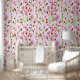Een Waterverf veld van roze wilde bloemen Behang