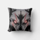 Dit afbeelding heeft een dreigend, wolfachtig wezen met scherpe, gloeiende rode ogen en een felle expressie. Het gezicht van het wezen wordt gedeeltelijk verduisterd door een reeks diepe rode krassen of klauwsporen, en de vacht lijkt getextureerd met een mix van donkere en lichte tinten. De achtergrond is overwegend zwart met spatten rood, wat bijdraagt aan de algemene onheilspellende sfeer.