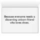 Omdat iedereen een merkwaardige eenhoorn vriend nodig heeft die van Shoes houdt.