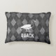 Aantrekkelijk voor het meer excentrieke individu, dit rechthoekige accentkussen is voorzien van een zwarte en grijze grungy argyle print, met een wit pictogram van een eend. De aanpasbare witte tekst bevat het woord "QUACK." Een raadselachtig en onverklaarbaar item!