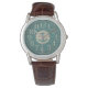 Uniek Decoratief Nautisch Anker Wood Classic Bruin Leather Strap Watch. Beschikt over een oude beschilderde shabby houtprint met crème kleurnummers en scheepstanker. Deze ontwerpers polshorloge is perfect voor oceaan, kust, nautisch, anker, strand, haven enz. thema's. Je kunt ook tekst toevoegen aan dit designers polshorloge.