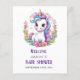 Eenhoorn baby shower uitnodiging. Nodig familie en vrienden uit met deze persoonlijke feestuitnodiging. Het heeft een schattige eenhoorn. Personaliseer deze unicorn party uitnodiging door een naam, datum, tijd, locatie en meer toe te voegen. Deze baby shower uitnodiging is ideaal voor een baby shower. Overeenkomende objecten beschikbaar.