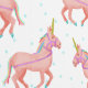 Dit originele behangontwerp omvat een repeatting patroon van schattige roze eenhoorns en lichtblauwe sterren op wit. Het zou er echt schattig uitzien in een kinderkamer of meisjesslaapkamer.