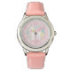 Dit eenhoorn horloge heeft een schattige, grillige witte eenhoorn en bloemen design. Personaliseer het met een naam.