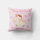 Eenhoorn kerstvakantie gepersonaliseerd roze kussen