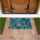 EENHOORN ONDER BLAUWE BLOEMEN Aqua Blue Green Bloe Deurmat