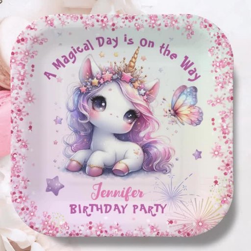 Unicorn 4th Birthday Party Girl Pink PurpleOntworpen door H-Art Studio Design